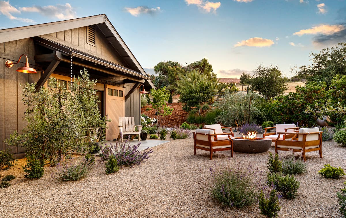 Since the property is in the countryside, landscape lighting played an important role. We used lighting to safely illuminate the walkway and highlight the Mediterranean-inspired plantings included in the design. We also took inspiration from the remodeled interior—mirroring pottery, colors, and certain design elements—and carried those ideas into the landscape to create a cohesive indoor-outdoor connection.